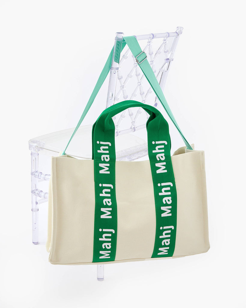 Introducing the Mahj-It-All Bag in a captivating kelly green hue! Lined with a vibrant orange interior, this refreshed canvas storage companion is designed to bring a smile to your face. Not only does it elevate your Mahjong gaming experience, but it also doubles as a fantastic work bag.