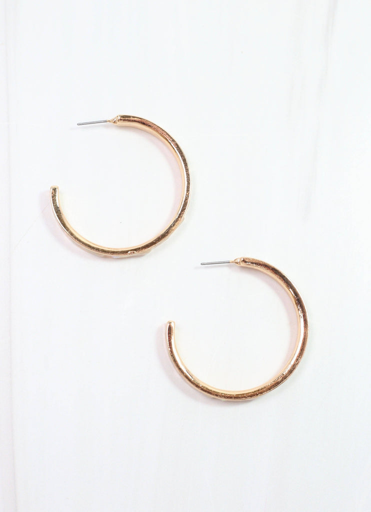 This metal hoop earring features opal color block accents on a post back. Dimensions: * 1.6" diameter