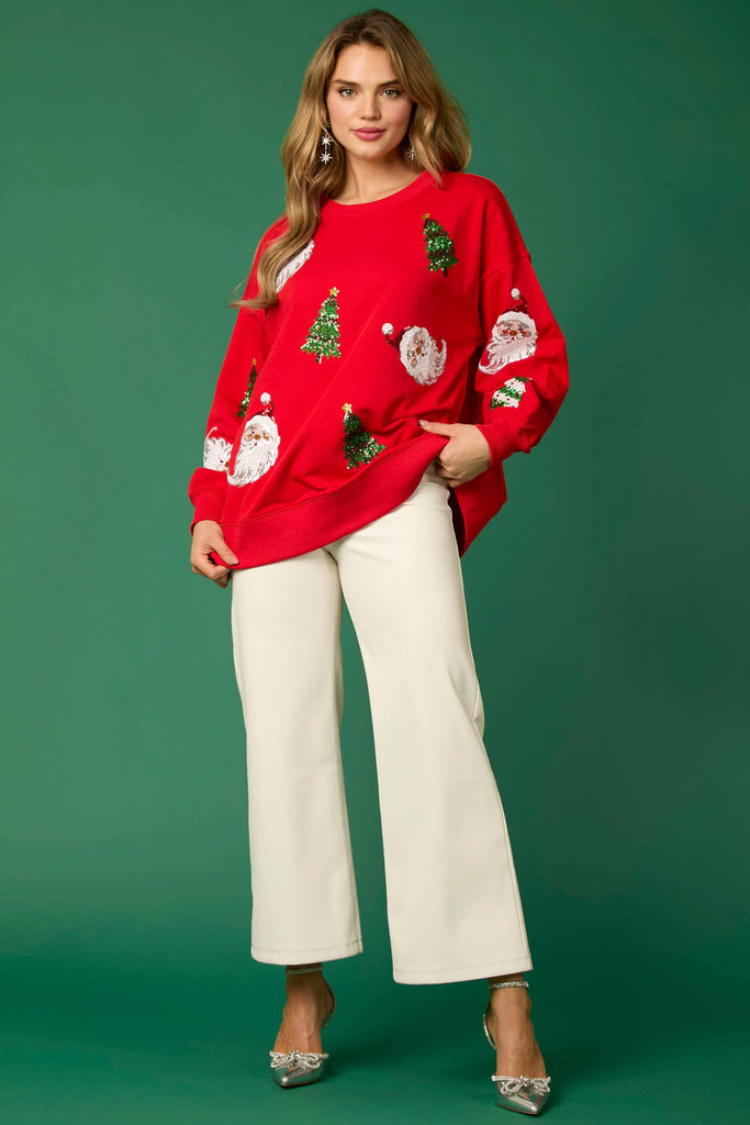 Fantastic Fawn - Santa & Xmas Tree Sequin Pull Over - Preorders: RED / M
