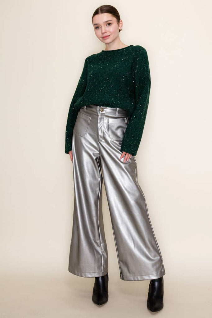 knit, dropped shoulders, round neck, sweater, long sleeves, glitter, raw-edge, knit sweater, top, regular size, standard, young contemporary, contemporary, trendy, stylish, fashionable, daily wear, everyday wear, Fall, Winter, F/W, women's clothing, women's apparel, women's wear,