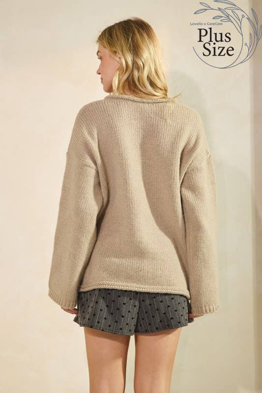 GeeGee x Lovelo - Plus Chunky V-neck Pullover Top OT50703PL: Brown / 2XL