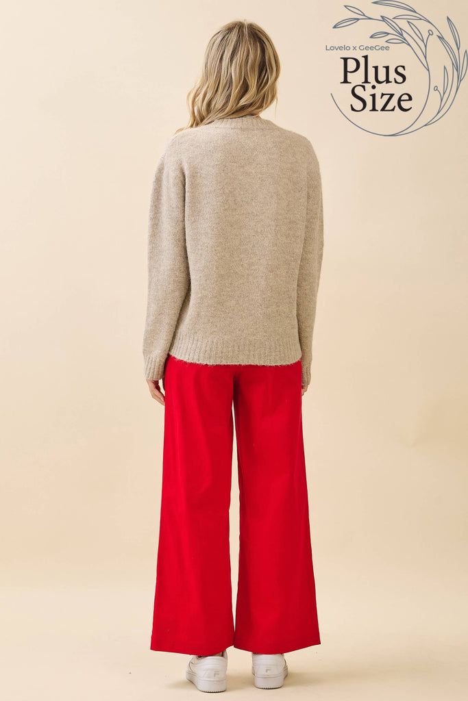 GeeGee x Lovelo - Plus 'Very Merry' Knit Sweater CT52386PL: Taupe / 2XL
