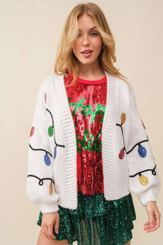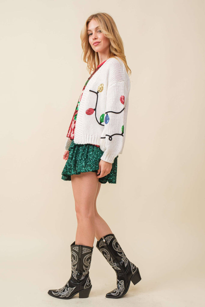 Main Strip - Christmas Sequin Light Cardigan: WHITE / M