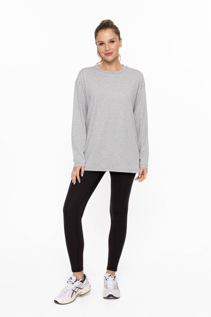 Introducing the newest fabric to our line: 100% organic cotton! With a super soft handfeel, this long sleeve boyfriend fit tee features an oversized fit, a ribbed neckline, and smooth flatlock seaming. Miška is 5'9", a size 4, and is wearing an S 100% organic cotton Made in China