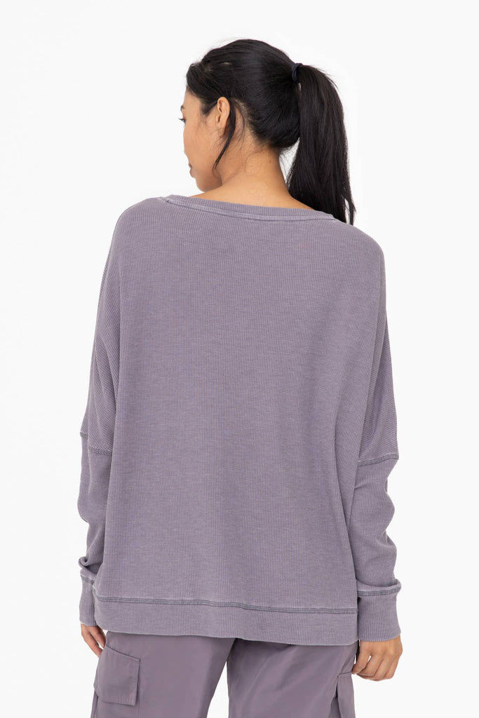 Mono B - Waffle Ribbed Roundneck Pullover: DARK BASIL / S:M:L (2:2:2)