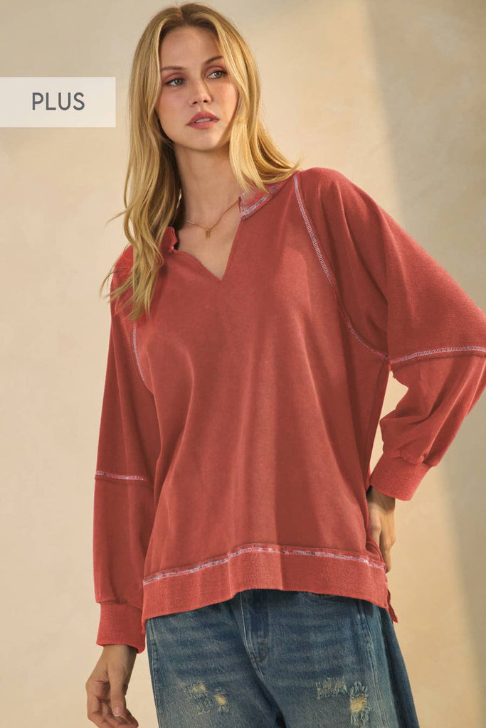 Acid washed long sleeve sweatshirts with contrast stitching details
