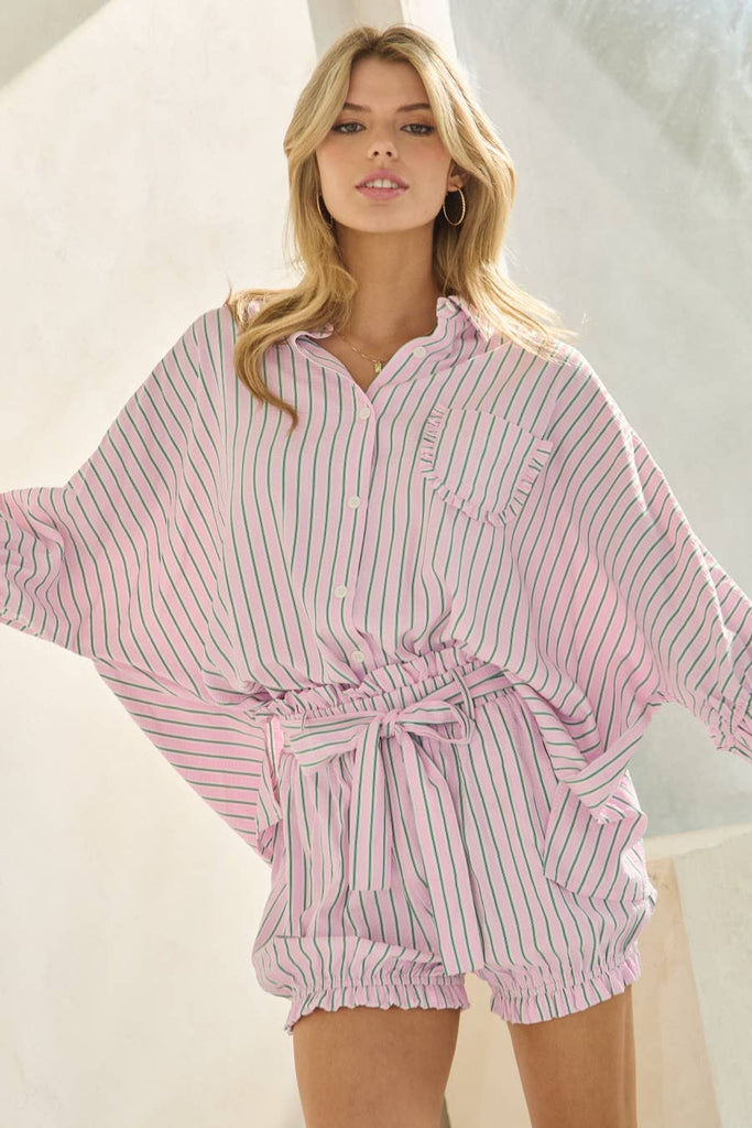 Oddi - Striped Button Down Oversized Shirts: Blue Stripe / S