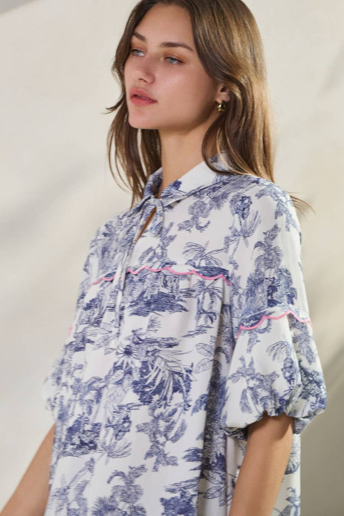 Oddi - Toi De Paris Printed Blouse: Blue Multi / M