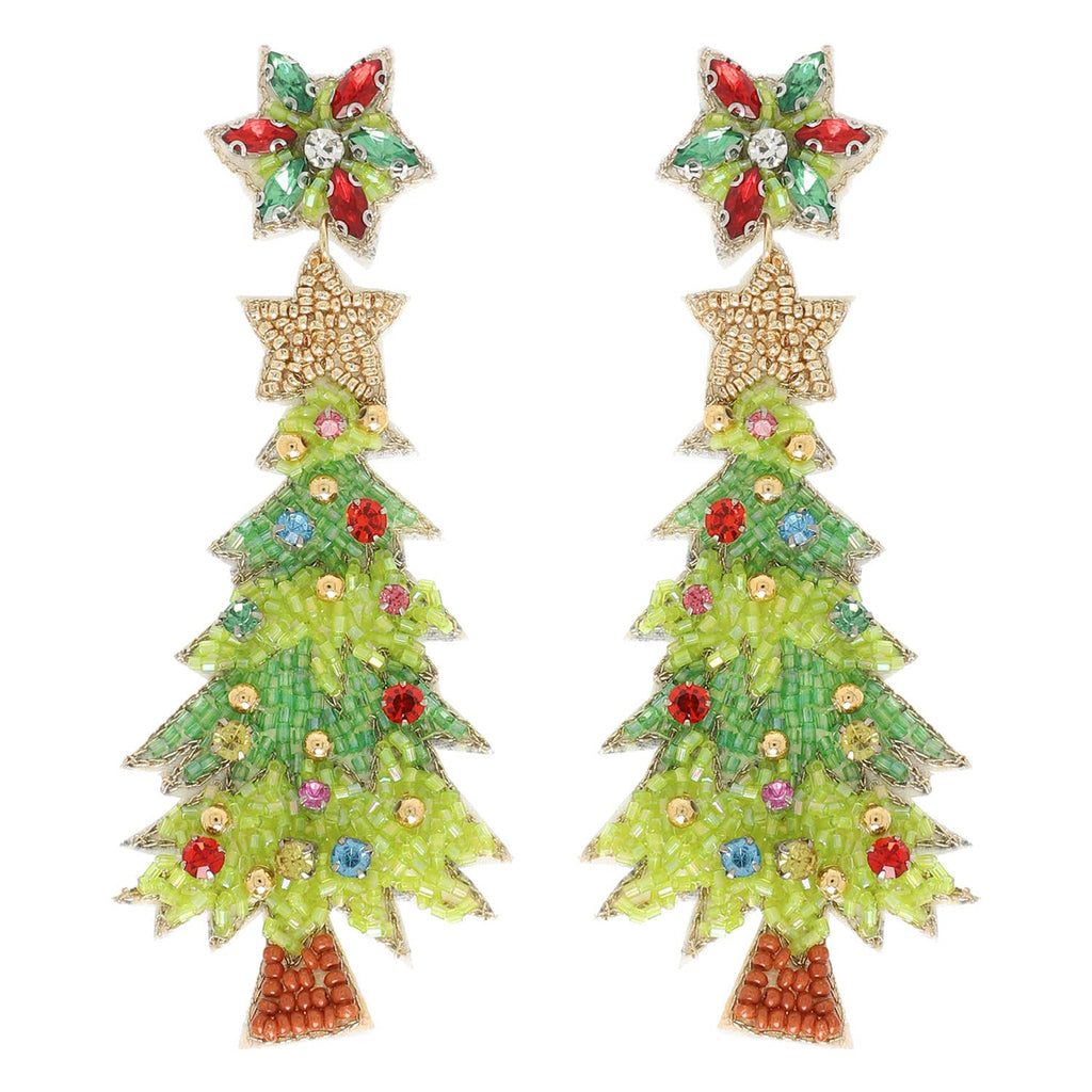 Add some sparkle to your holiday look with our Christmas Tree Jeweled Post Earrings. These earrings feature a festive design and are embellished with glittering jewels, making them the perfect accessory for any festive occasion. Made with high-quality materials, they are also durable and long-lasting. Get yours today! HEIGHT: 4" WIDTH: 1.5"