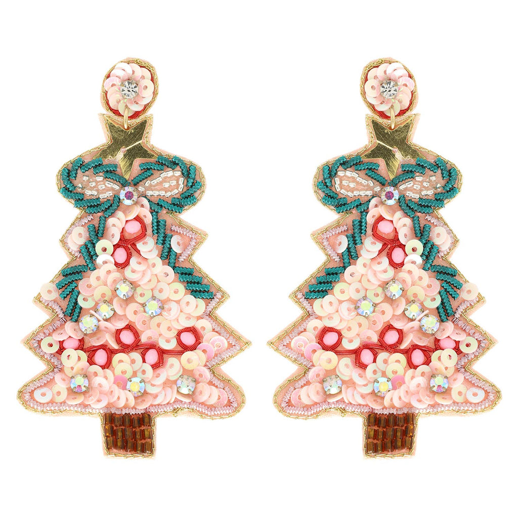 Add some festive sparkle to your holiday look with our Christmas Tree Sequins Embroidered Earrings. The intricately designed sequins add a touch of elegance, perfect for any festive occasion. Made with lightweight materials, these earrings are comfortable to wear all day long. HEIGHT: 3.6" WIDTH: 2.2"