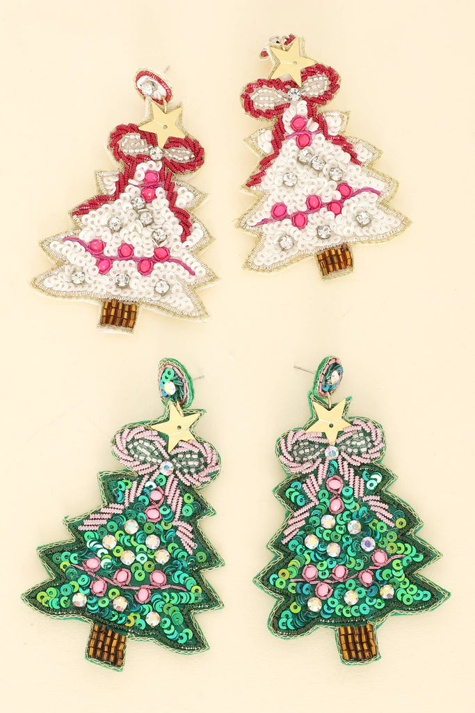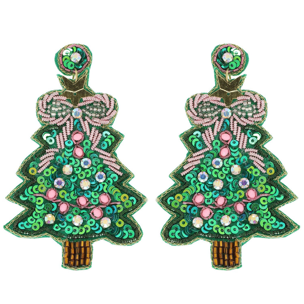Add some festive sparkle to your holiday look with our Christmas Tree Sequins Embroidered Earrings. The intricately designed sequins add a touch of elegance, perfect for any festive occasion. Made with lightweight materials, these earrings are comfortable to wear all day long. HEIGHT: 3.6" WIDTH: 2.2"