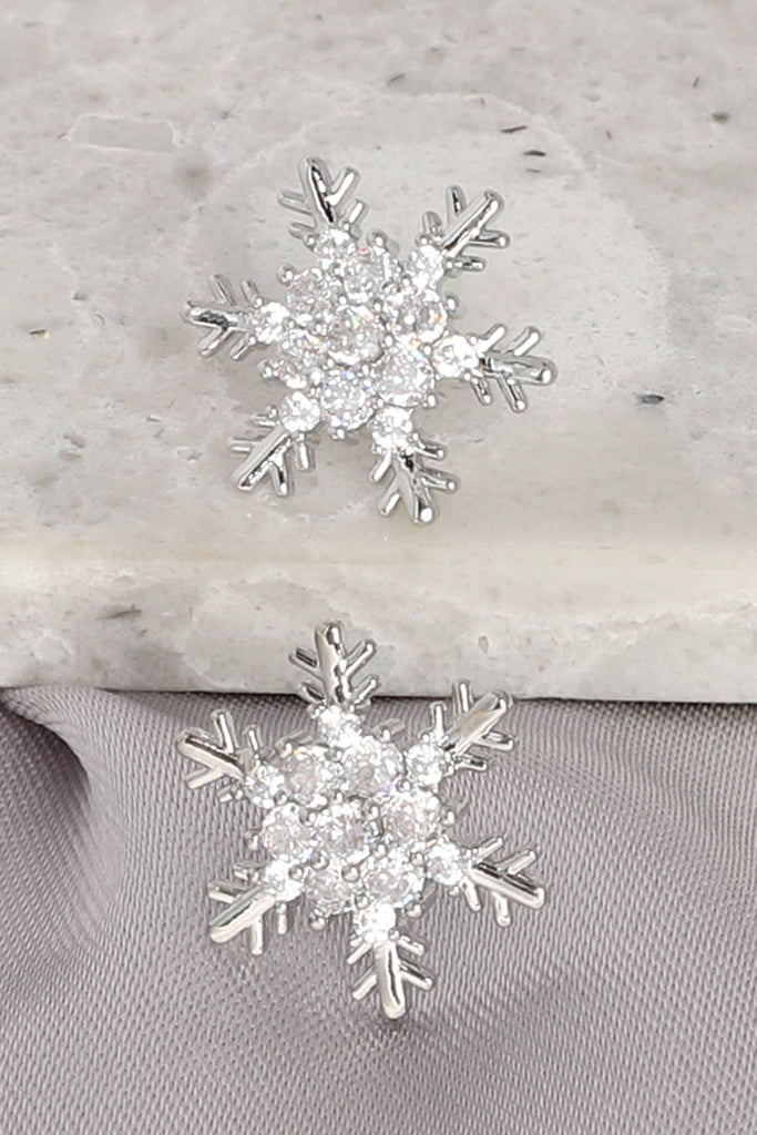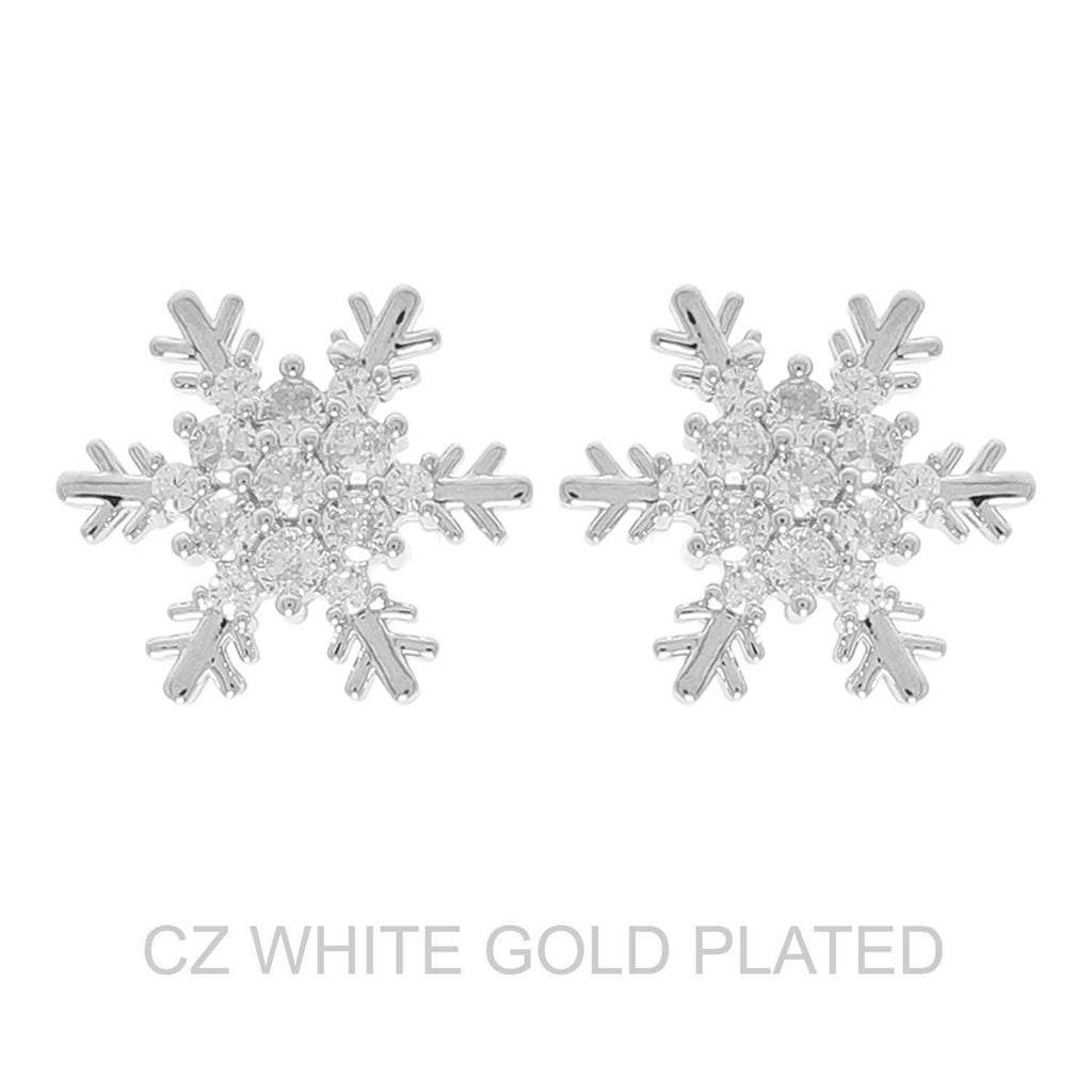 Sophia Collection - White Gold Plated CZ Snowflake Post Earrings