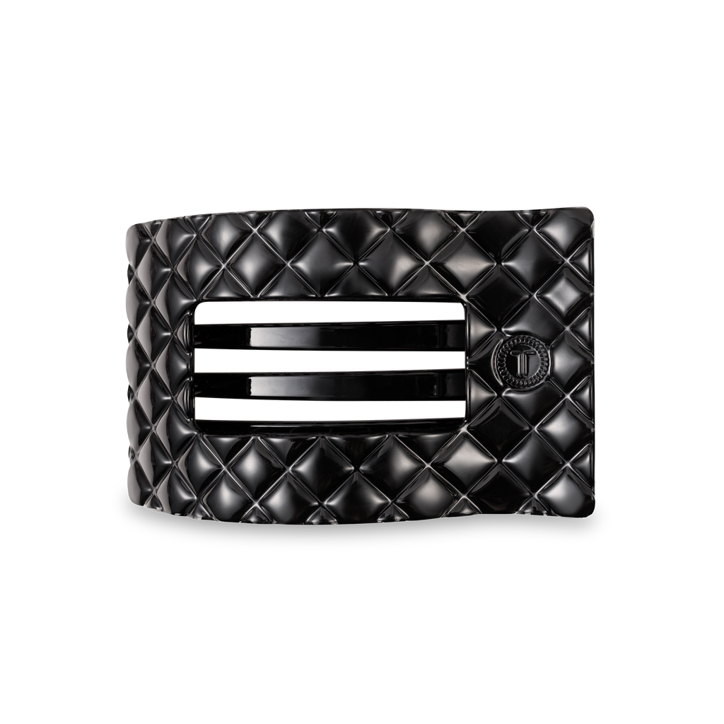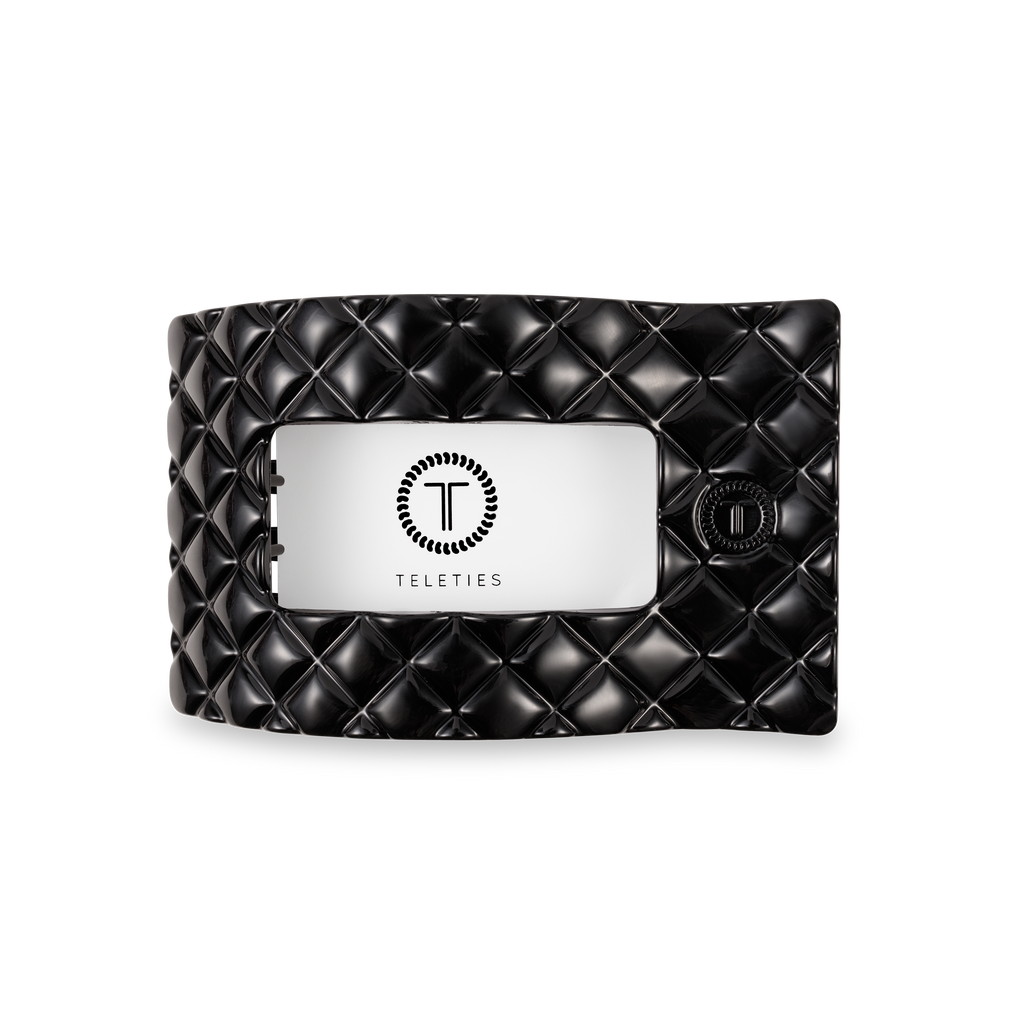 Lean back and relax - comfort just got a new shape. Introducing the TELETIES Jet Black Quilted Medium Flat Rectangle Hair Clip, the newest addition to our best-selling Flat Clip Collection. Joining the original Round and Square styles, this elevated rectangular design offers the same flat-back comfort and stronghold TELETIES is known for - now with a sleek, modern style.