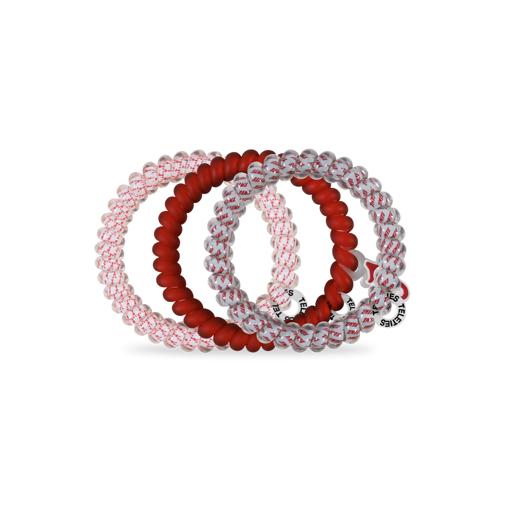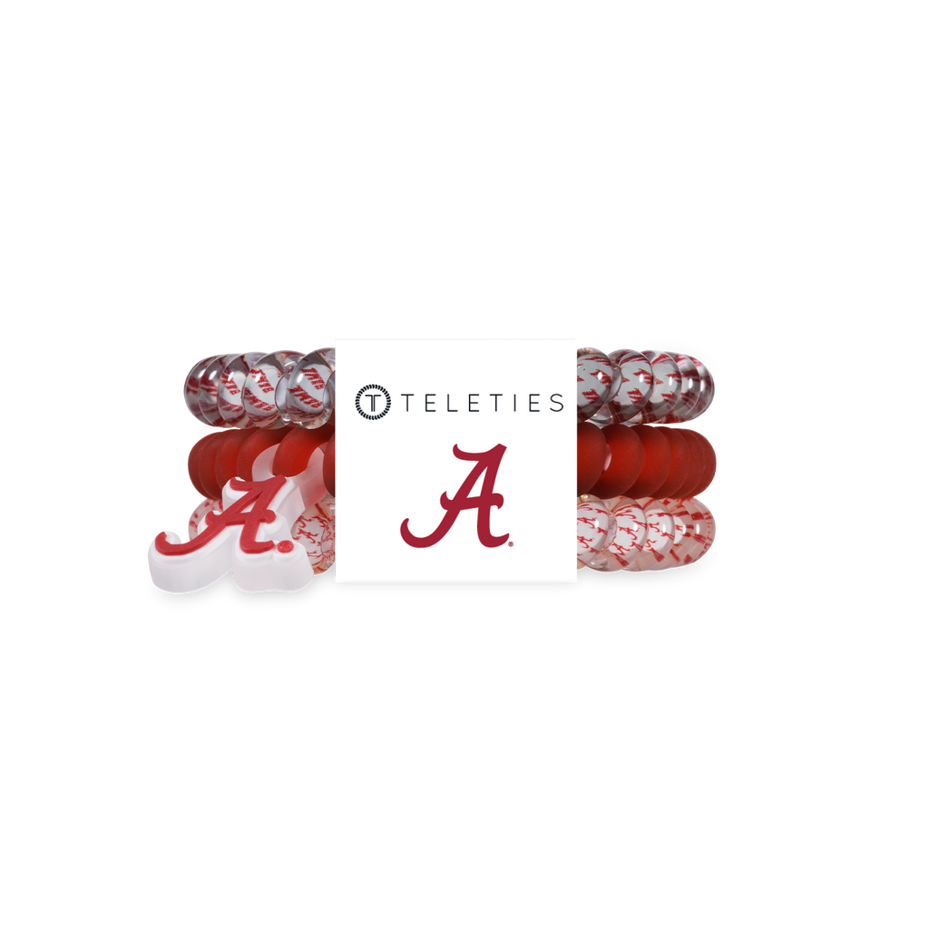 Cheer on the University of Alabama in style with the TELETIES, Roll Tide! Small Hair Ties in Crimson and Gray offer a strong grip without damage, doubling as a chic wrist accessory when not in use. Your new favorite hair essentials all year round. Shop your favorite University of Alabama hair accessories now! Roll Tide!