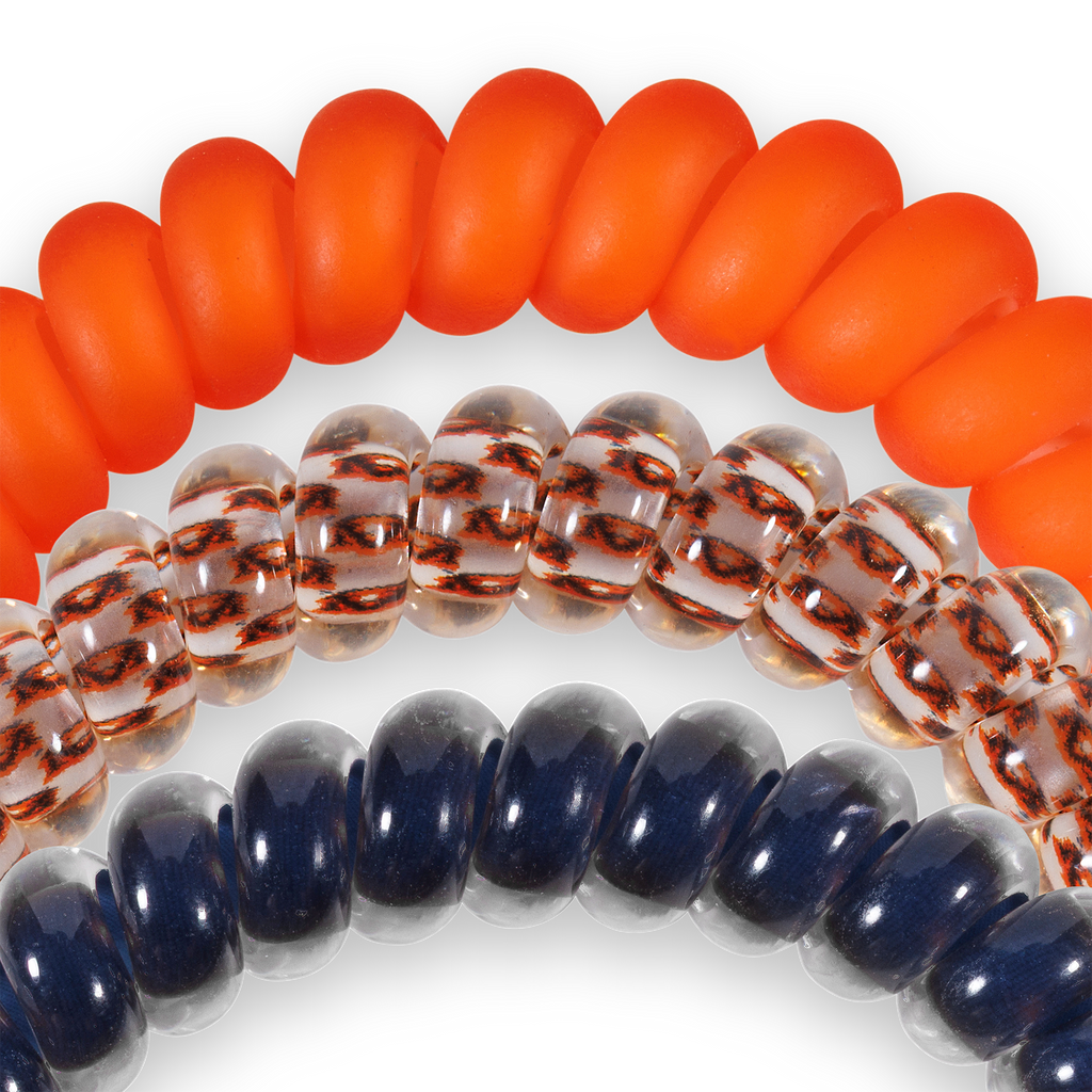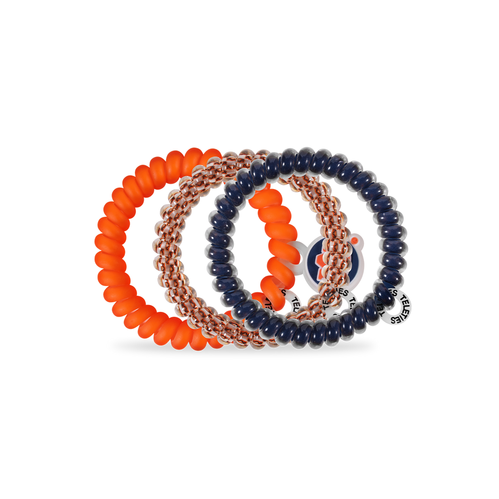 Cheer on Auburn University in style with the TELETIES, War Eagle! Small Hair Ties in Orange and Navy offer a strong grip without damage, doubling as a chic wrist accessory when not in use. Your new favorite hair essentials all year round. Shop your favorite Auburn University hair accessories now! War Eagle!