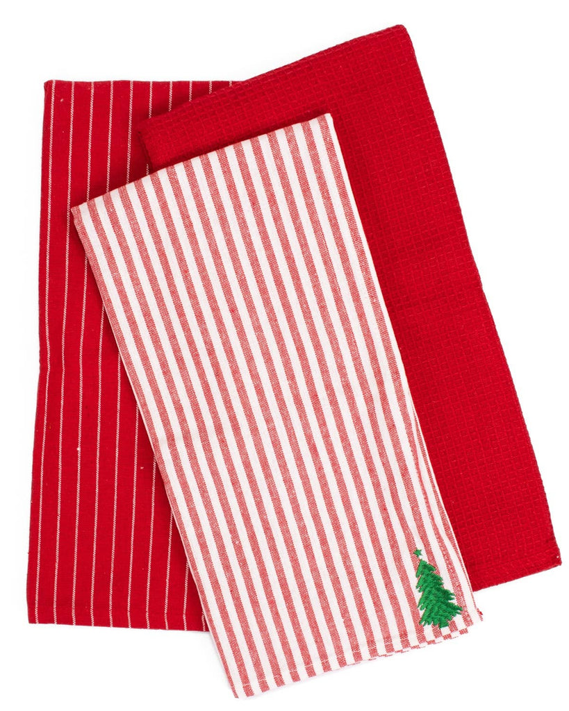 The Royal Standard - Christmas Tree Hand Towel Set Red/Soft White/Green 20x28 Set of 3