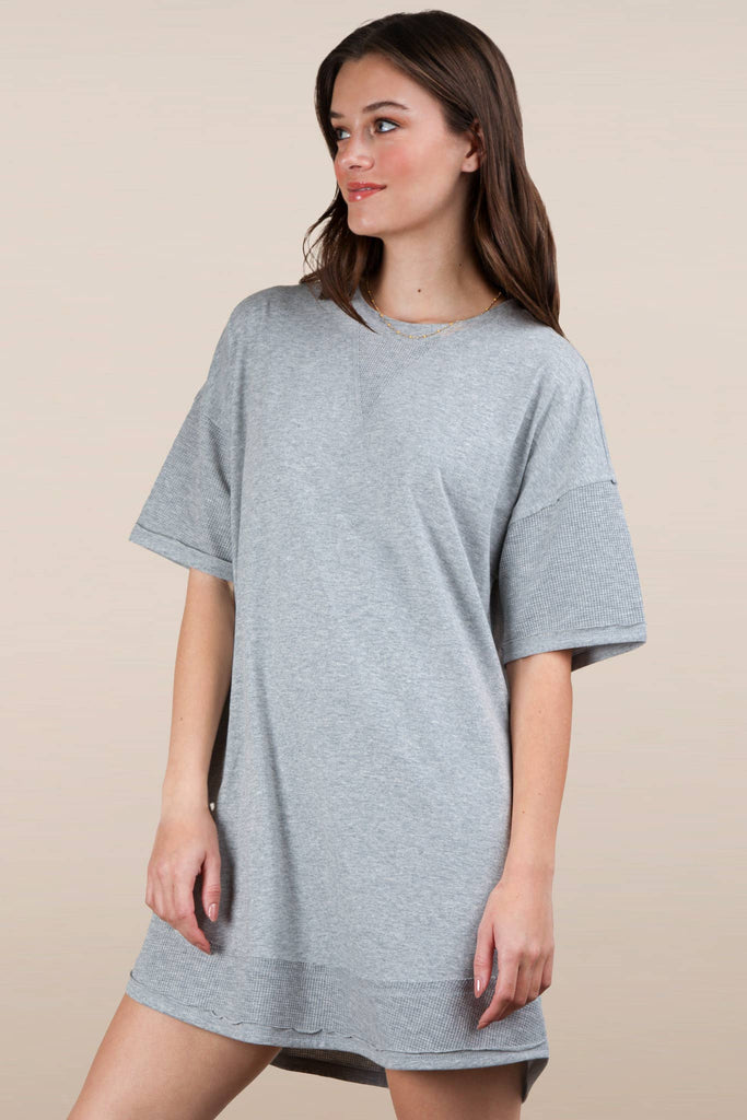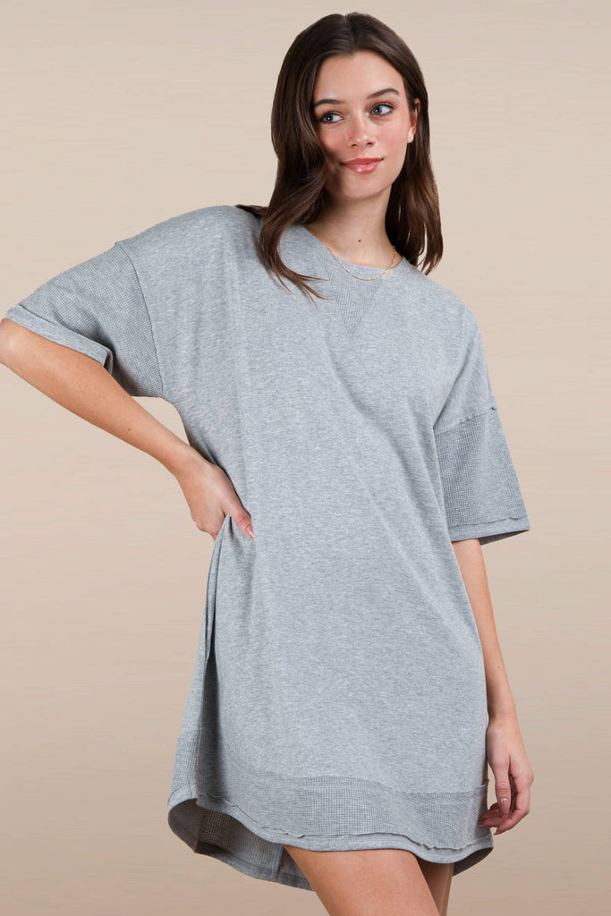 - Mineral Washed Comfy Casual Knit Mini Dress