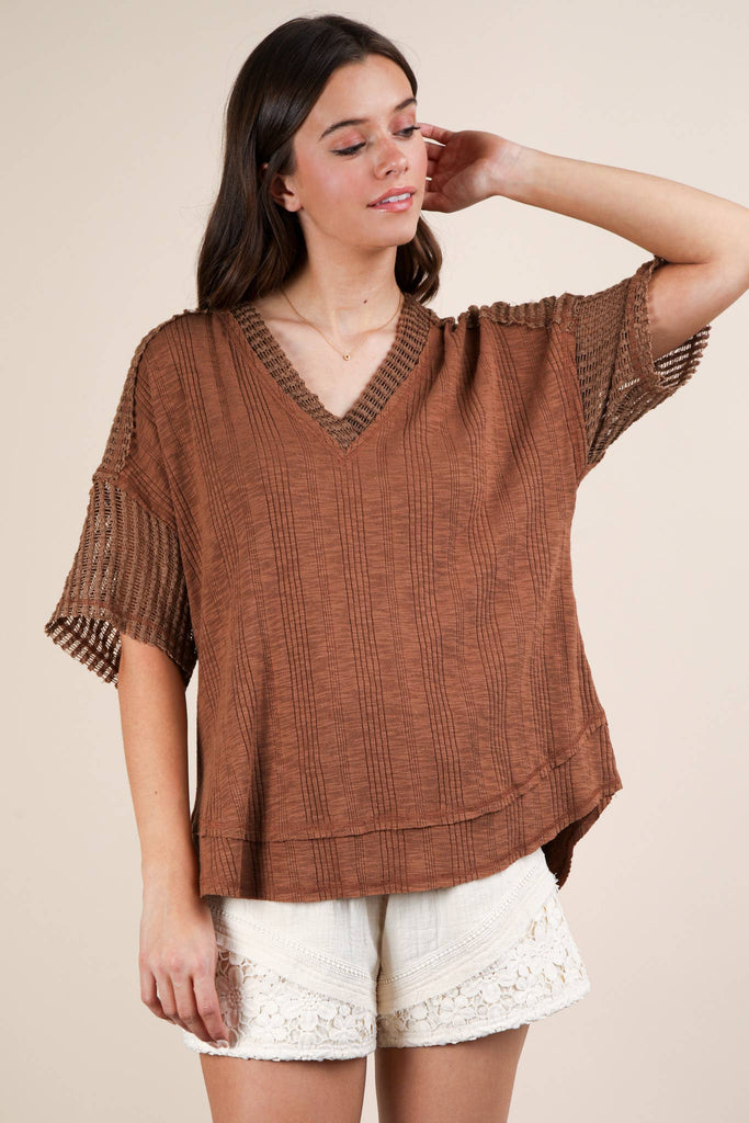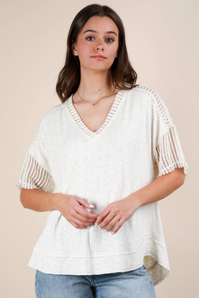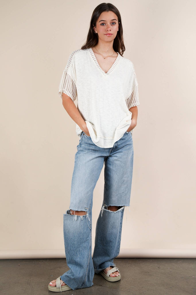 VERY J - NT12088-Oversized Contrast Knit Comfy Casual Top: IVORY / S-M-L/2-2-2